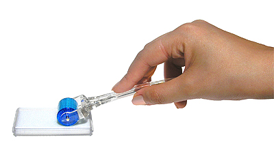 The MTS-Roller has been designed using ergonomic principles with the aim of reducing discomfort and increasing productivity during microneedle operation. The asymmetric tilt on this Roller ensures that it falls naturally under the fingers.