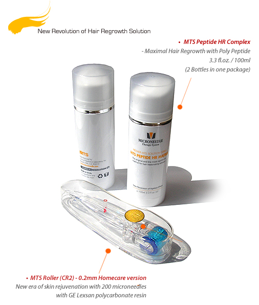 MTS Peptide HR Complex is the first and only product in its class to directly stimulate the Anagenic Growth phase of the hair cycle with growth promoting growth factors for hair. The product is also first in its class to directly suppress the Catagenic Rest and Telogenic Loss phases of the hair cycle. The combined result is a hair restoration product that offers faster results with improved efficacy in problem treatment areas.